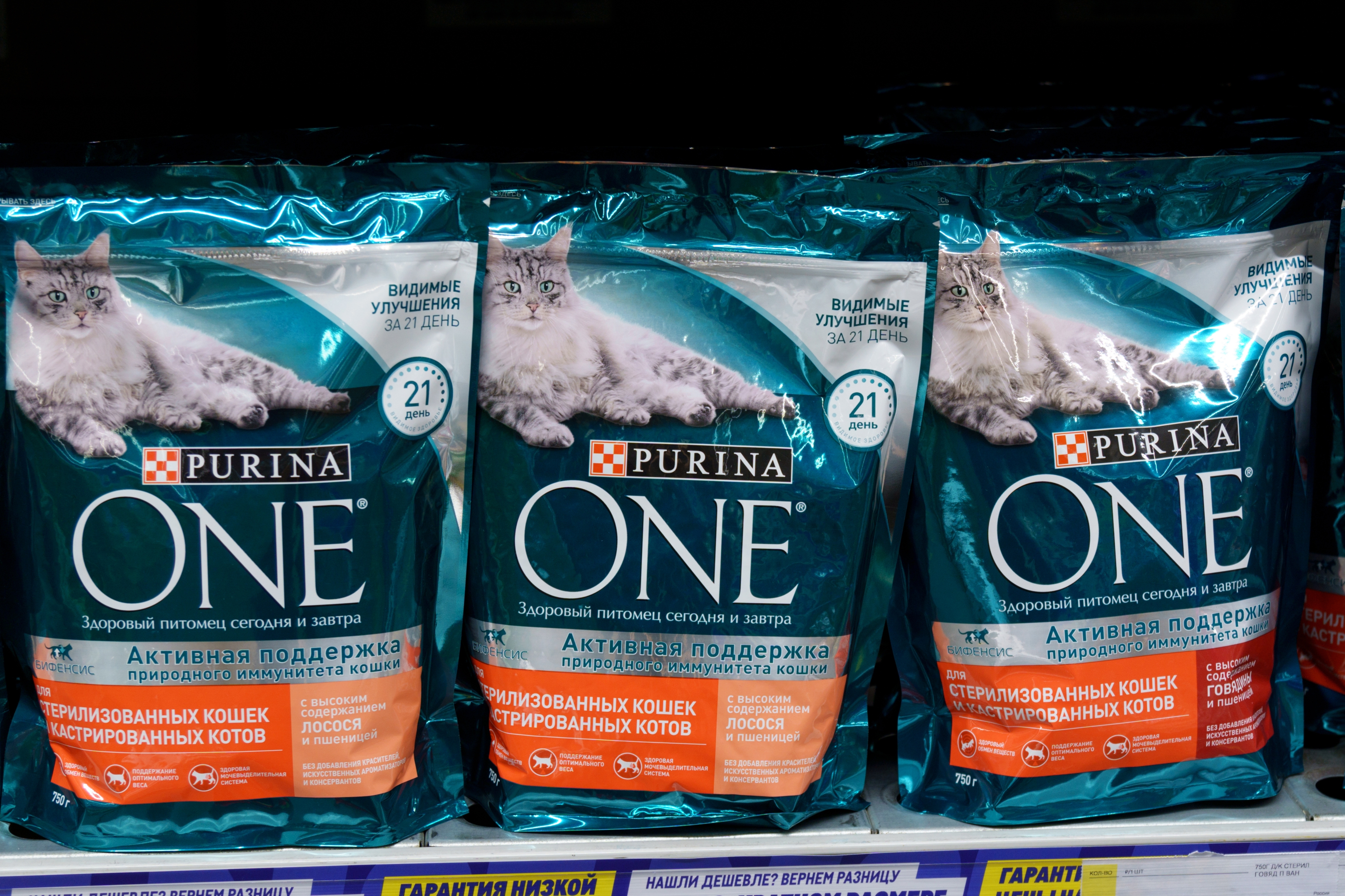 Nestle выпускает корма под марками Pro Plan, Felix, Purina One «Гурмэ», «Дарлинг», Cat Chow, Dog Chow и Frieskies. Mars является поставщиком товаров под марками Royal Canin, Perfect Fit, Whiskas, Pedigree, Sheba.