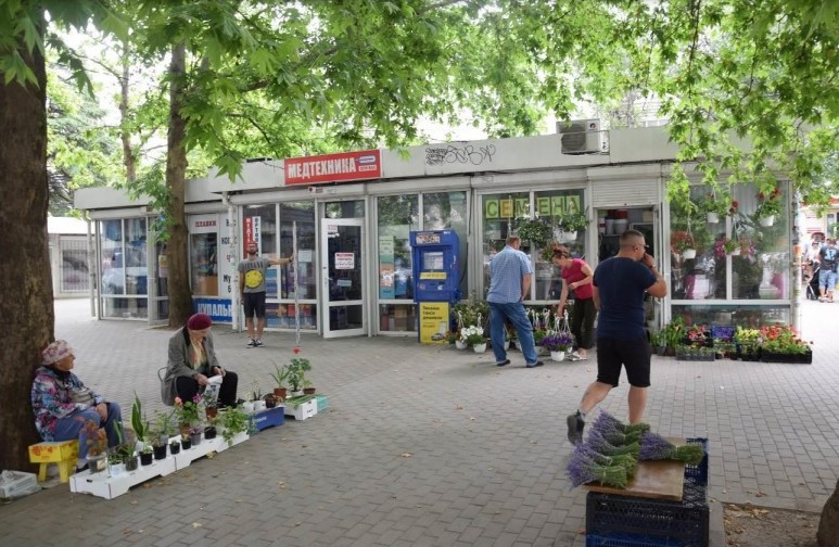 Торговать на проходе — так, чтобы идущий по улице человек буквально спотыкался об ассортимент, — этому принципу в Севастополе следуют не только стихийщики, но и вполне законные владельцы павильонов.