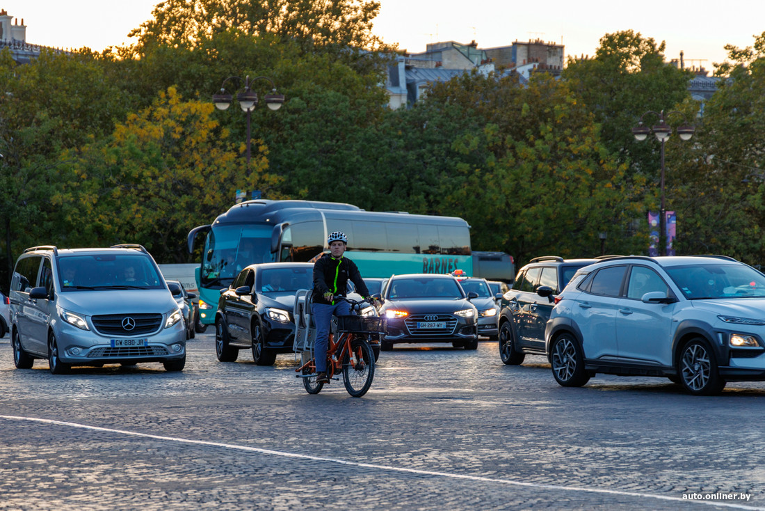 Париж отвечает веселым звоном. Машину окружают, велосипедисты приближаются со всех сторон: их отряд атакует нас по проспекту Фош, подкрепления мчатся по авеню Фридланд и проспекту Ваграм, а съезд на Гранд Арме перекрыла старая гвардия на шеринговых велосипедах.