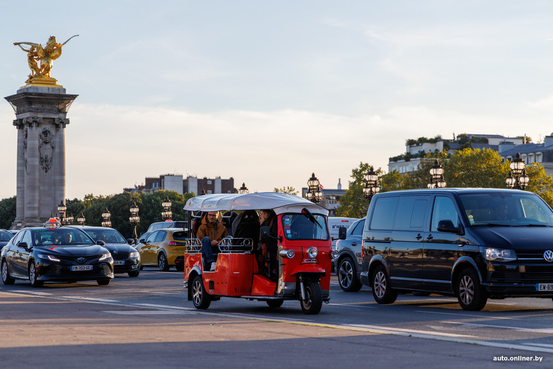 Почему нонсенс? Да потому, что дорожное движение без самокатчиков не кажется более упорядоченным. Это особенно бросается в глаза на пути от садов Трокадеро к мосту Александра III. Справа бежит река, снуют туда-сюда фирменные парижские суда, заполненные туристами. Вдоль всего берега тянется пешеходная дорожка, вплотную к которой прилегает велополоса. Туристы, эти вечные зеваки с фотоаппаратами, не слишком глядят под ноги, то и дело заходя не на свою территорию ради удачного кадра. Поэтому перезвон велосипедных звоночков тут не прекращается. И велосипедисты едут, кажется, куда быстрее разумного, уверенные в том, что их вовремя услышат и пропустят.