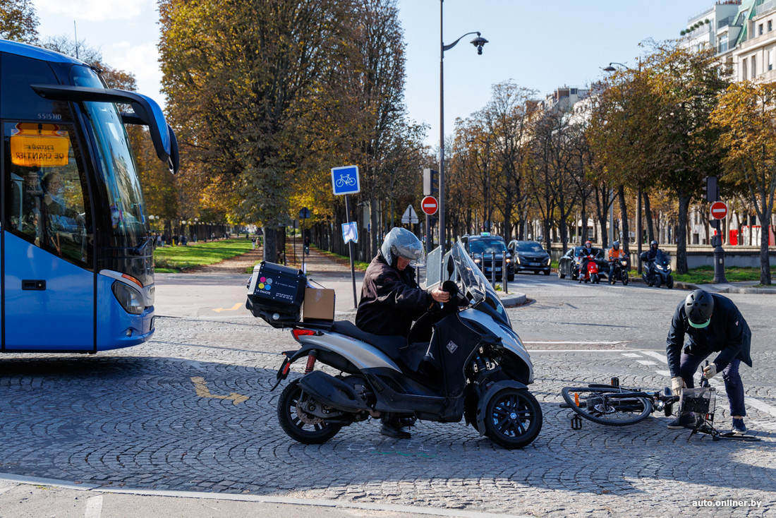 На дорогах между тем все как обычно — абсолютный парижский хаос, уже привычный местным. Водители кое-как слушаются сигналов светофоров, все остальные перемещаются как придется, руководствуясь здравым смыслом и чувством самосохранения. На красный здесь никто не пойдет под колеса автомобиля, а если колес нет, то и на светофор никто смотреть не станет. Иногда это приводит к весьма неприятным последствиям.