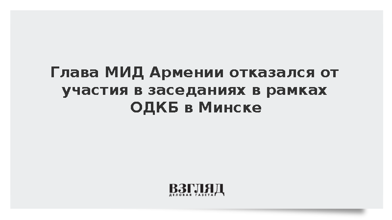 В ходе телефонного разговора с главой МИД Белоруссии Сергеем Алейником Мирзоян сообщил, что не сможет посетить совместное заседание Совета МИД ОДКБ, Совета министров обороны и Комитета секретарей Совета безопасности, которое пройдет 22 ноября в Минске, передает ТАСС.