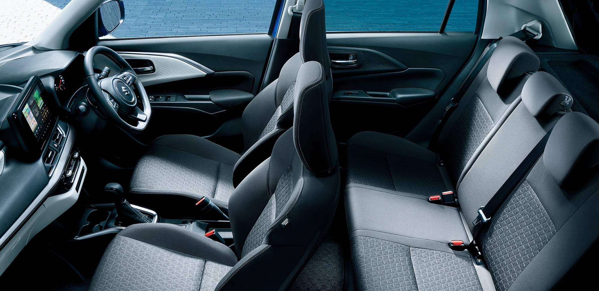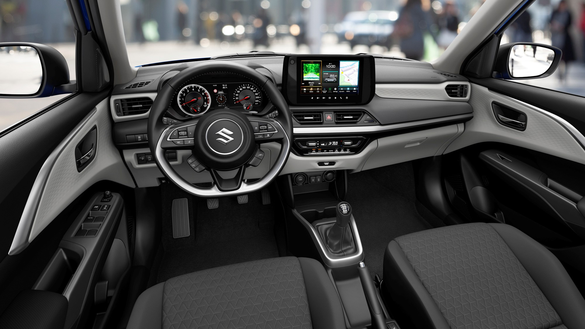 Салон «четвёртого» Свифта выглядит откровенно старомодно, здесь сохранён классический щиток приборов со стрелочными циферблатами и отдельный блок микроклимата с физическими клавишами. Экран мультимедийной системы переместился вверх и теперь не врезан в центральную консоль, а как бы парит над ней в толстой чёрной глянцевой рамке (диагональ экрана — 9 дюймов). Места для хранения мелочей стало больше. Список доступных для модели электронных ассистентов водителя существенно расширен, в нём появились адаптивный круиз-контроль с пробочным режимом и камера, следящая за самочувствием водителя. Погрузочная высота багажника уменьшилась, объём багажника — 265 л.