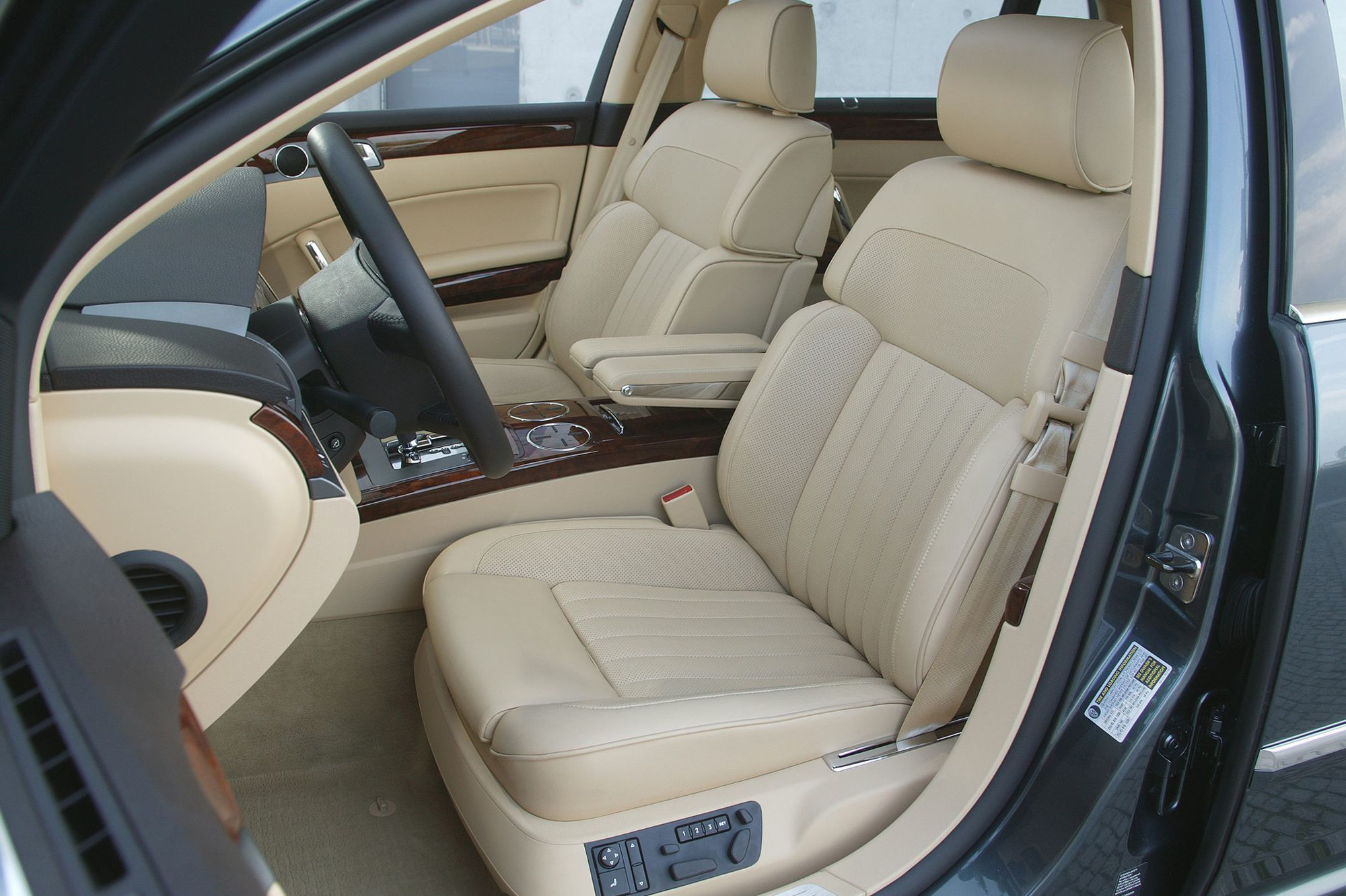 При этом у автомобиля была прекрасная шумоизоляция, отличная плавность хода и хорошо настроенное рулевое управление Servotronic с переменным усилием в зависимости от скорости. Эргономика, микроклимат, оснащение салона – всё это также заслуживало высокой похвалы, и Phaeton с точки зрения инженерии представлял собой совершенный продукт. Приведём несколько примеров: индивидуальный обдув каждого бокового стекла, шторки для стёкол и даже форточек(!), скрытые за поднимающимися вставками из натурального кленового шпона дефлекторы климатической установки, подогрев и вентиляция как передних, так и задних сидений...