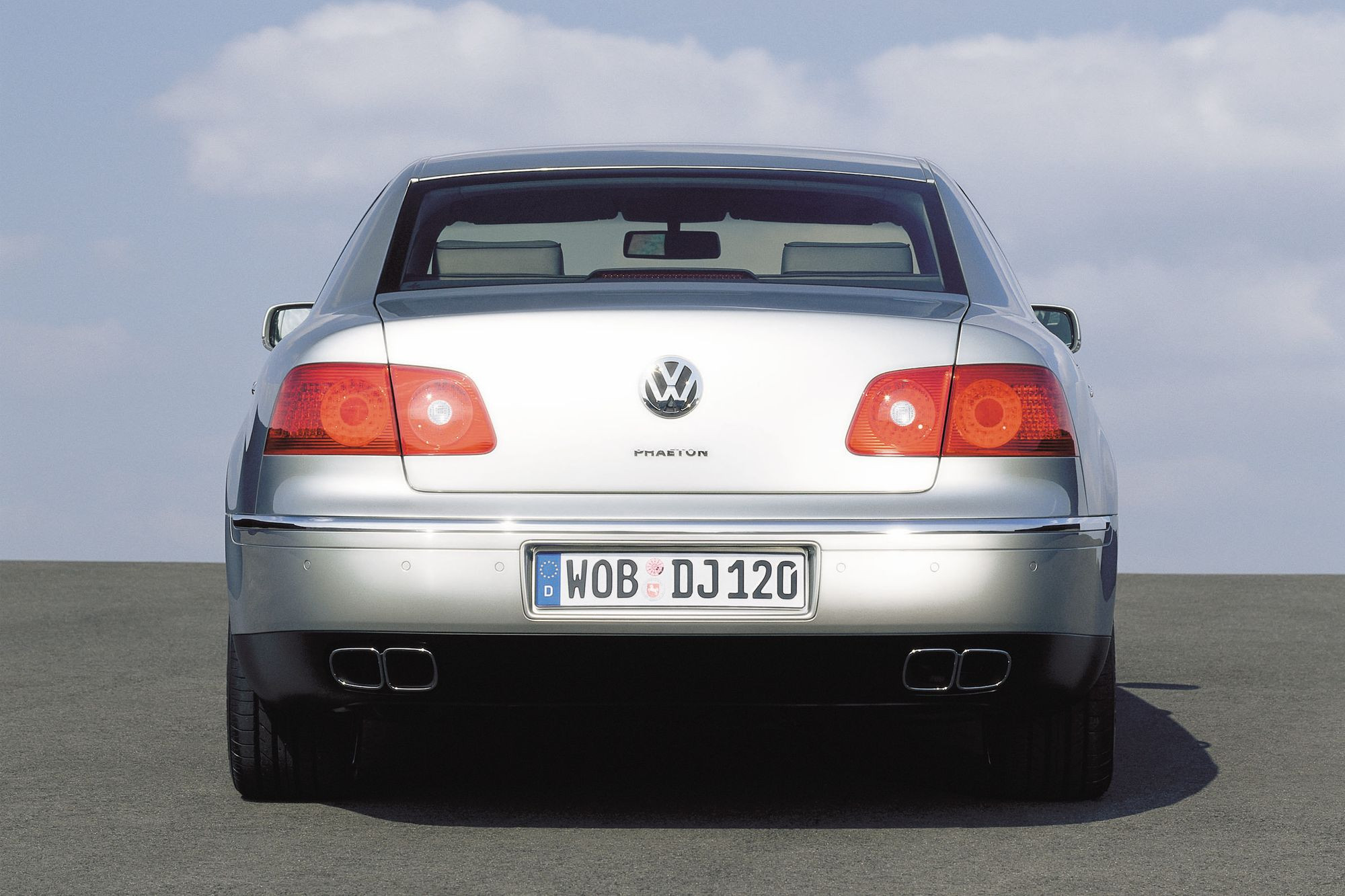 Крупные передняя и задняя оптика, большая площадь остекления, массивная решетка радиатора, хром по периметру кузова... Большой седан выглядел несколько тяжеловесно из-за малого угла наклона задней форточки и широкой задней стойки, проигрывая «двести двадцатому» по лёгкости и изяществу силуэта. Был ли он стопроцентно узнаваем именно как Volkswagen? Вероятно, хотя визуально машина не сильно пересекалась с тем же Пассатом B5. Одно можно сказать точно: Phaeton снаружи был не просто сдержан, а даже скромен – возможно, излишне.
