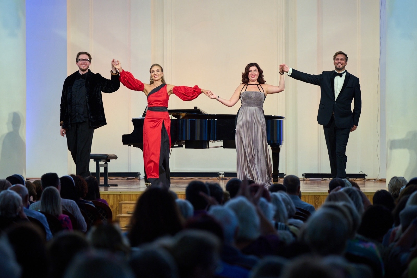 Конечно, здесь всегда ждут Валерия Гергиева: напомним, что он побывал в Алексине с Симфоническим оркестром Мариинского театра в рамках Пасхального фестиваля в 2022 году. А в этот раз от него в городок на Оке приехали певцы Мариинского театра: сопрано Жанна Домбровская, меццо Екатерина Сергеева, тенор Александр Трофимов, исполнившие вместе с пианистом Юрием Кокко фрагменты из опер и романсы русских композиторов. Поскольку всех желающих зал не вместил, то перед ДК поставили экран, куда шла прямая трансляция вечера. А туляки услышали эту программу на следующий день в Колонном зале Дворянского собрания. К слову, все события фестиваля были бесплатными: их проведение поддержало правительство Тульской области, выделив грант организатору проекта творческой лаборатории «Альфа Мюзик».