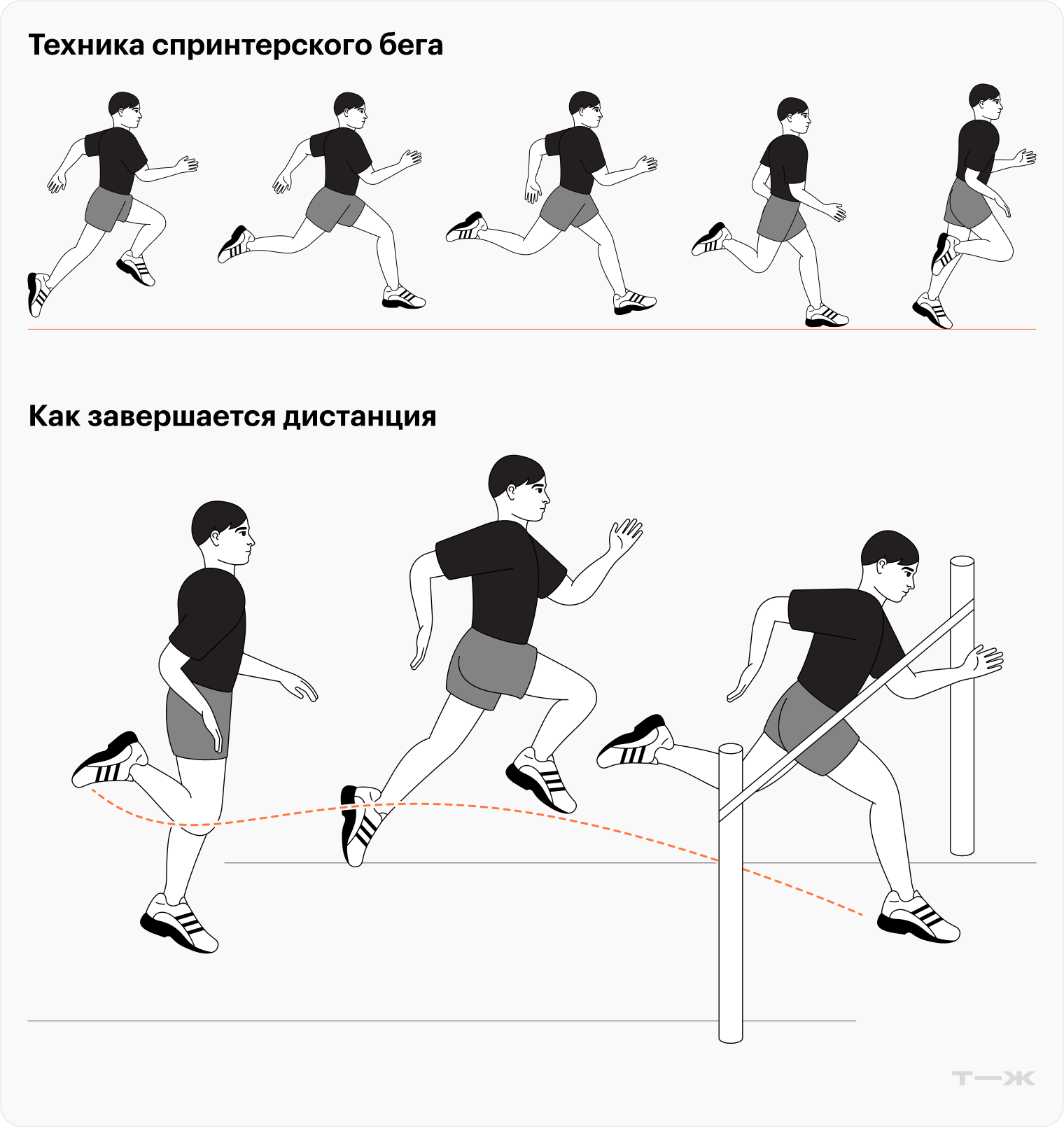 Техника бега на спринтерских дистанциях. Спринт включает дистанции на 60, 100, 200 и 400 м. Это вид бега, в котором необходима взрывная сила, — она нарабатывается в тренажерном зале, а не на беговой дорожке.