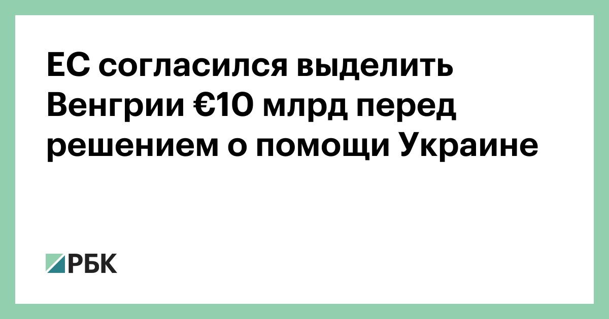 Ранее главный политический советник венгерского премьер-министра Балаш Орбан заявил, что Будапешт готов снять вето на четырехлетний пакет поддержки Украины в размере €50 млрд, предложенные Еврокомиссией, если ЕС разморозит средства поддержки Будапешта (около €30 млрд).