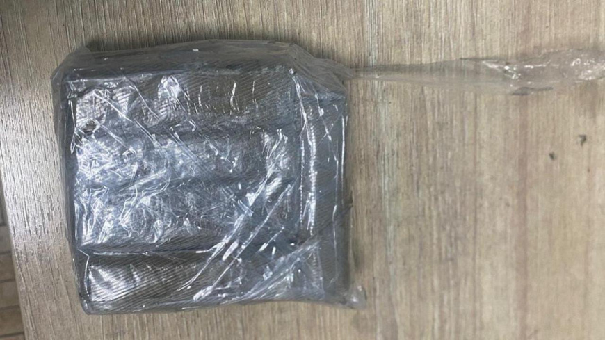Мужчину доставили в дежурную часть полиции, где в ходе проведения личного досмотра в присутствии понятых правоохранители изъяли у мужчины полиэтиленовый пакет, примотанный скотчем к спине, с пятью вакуумными упаковками с коричневым веществом внутри.