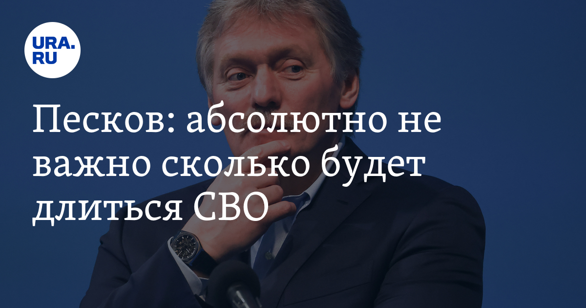 «Мы должны выполнить те цели, которые ставились при начале специальной военной операции. <…> Здесь сроки абсолютно не важны. Хотя, конечно же, мы все надеемся, что это будет лучше быстрее, чем медленнее», — заявил Песков, его слова передает ТАСС. Он также выразил надежду на то, что цели СВО будут достигнуты как можно скорее, отметив стремление к обеспечению безопасности будущих поколений и созданию «новой архитектуры безопасности» в стране.