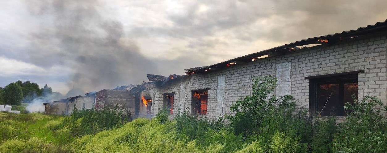 Серьёзное ЧП случилось в минувшую среду. В деревне Покровская загорелась ферма. Когда пожарные прибыли на место, кровля здания была полностью охвачена огнём. Спасатели эвакуировали из помещений крупный рогатый скот. Всего было выведено 110 коров. Информация о погибших животных уточняется.
