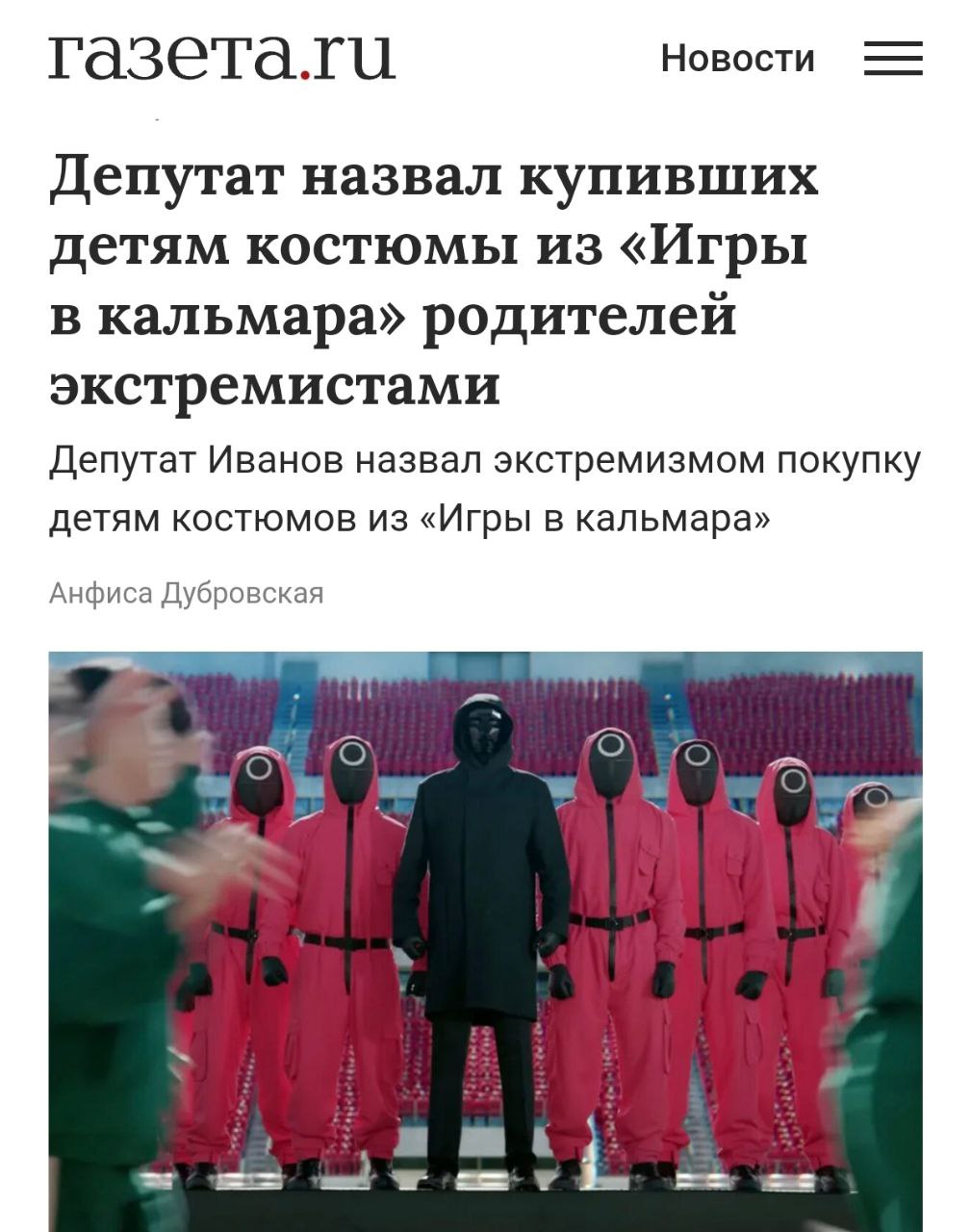 ⚡«Игру в кальмара» запретят в России из-за пропаганды экстремизма: депутат Госдумы увидел в сериале «неверные морали и деструктивные идеологии».