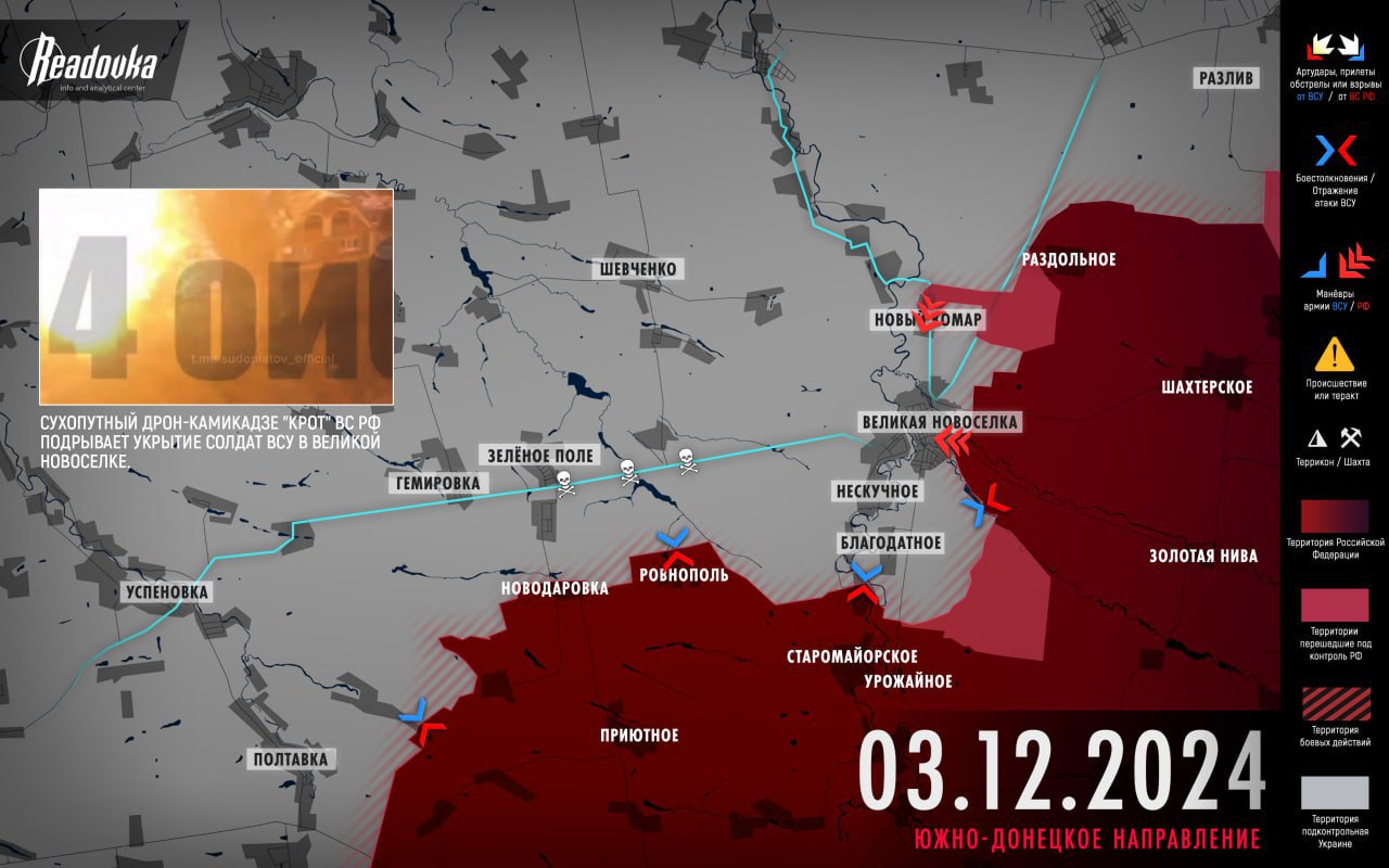Русская армия готовит удушающий захват вокруг Великой Новоселки — итоговая сводка Readovka к исходу 3 декабря