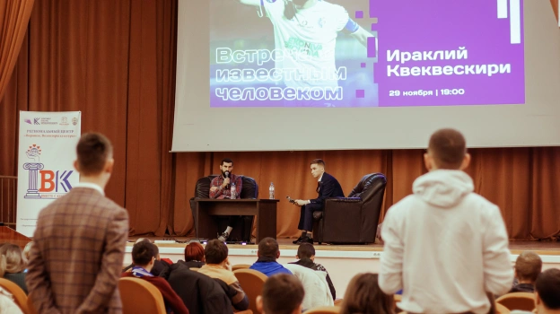 В рамках проекта «Воронеж. Волонтеры культуры» в главном корпусе ВГУ в среду, 29 ноября, состоялась встреча капитана футбольной команды «Факел» Ираклия Квеквескири с болельщиками. Футболист рассказал о себе, ответил на вопросы и провел автограф-сессию.