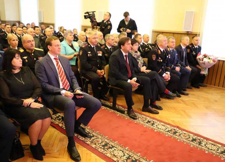 Торжественное собрание началось с внесения знамени Управления МВД. Заместитель начальника УМВД Вадим Черемисин зачитал поздравительную телеграмму от Министра внутренних дел России Владимира Колокольцева.