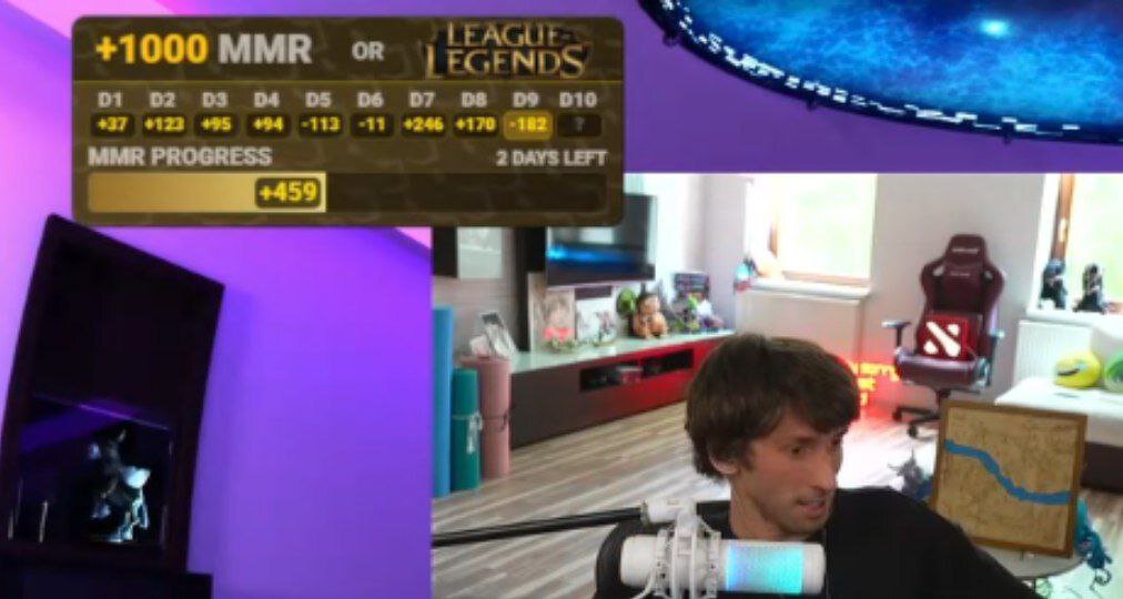 Данил «Dendi» Ишутин ранее запустил челлендж. Его суть заключается в том, что стримеру нужно апнуть 1000 MMR за 10 дней. Если он этого не сделает, то удалит Доту и сыграет в «Лигу Легенд».