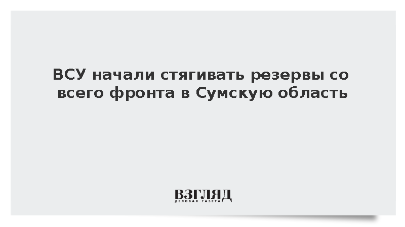 Украинская армия начала накапливать резервы со всего фронта в Сумскую область, сообщил источник в силовых структурах России.