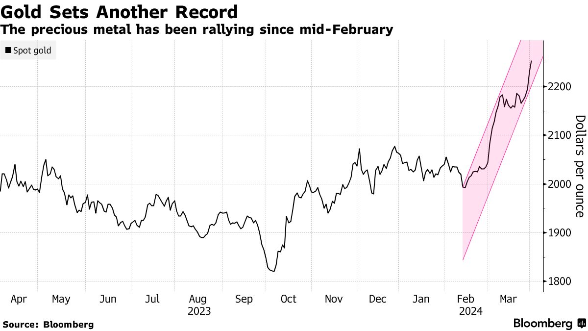 Золото подорожало до рекордной отметки $2 270 за унцию на фоне признаков того, что ФРС США все ближе к снижению процентных ставок. Ралли также подогревает геополитическая напряженность и устойчивый спрос со стороны Китая. JPMorgan называет золото выбором номер один среди сырьевых товаров. @banksta