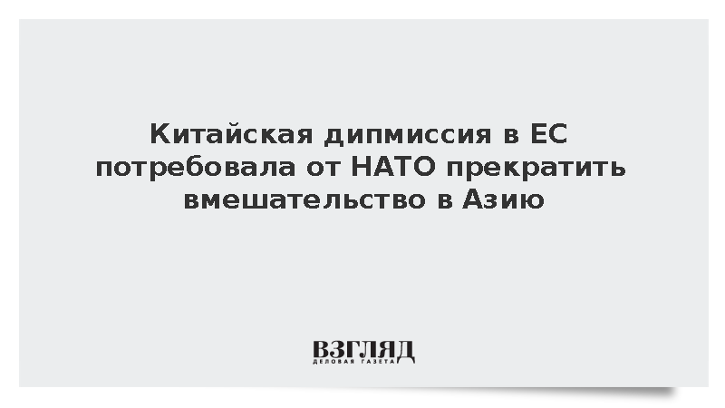 Китайская дипломатическая миссия в Евросоюзе призвала НАТО исправить ошибочные представления о Китае и прекратить вмешательство в дела Азиатско-Тихоокеанского региона, заявив, что альянс должен способствовать миру и стабильности.