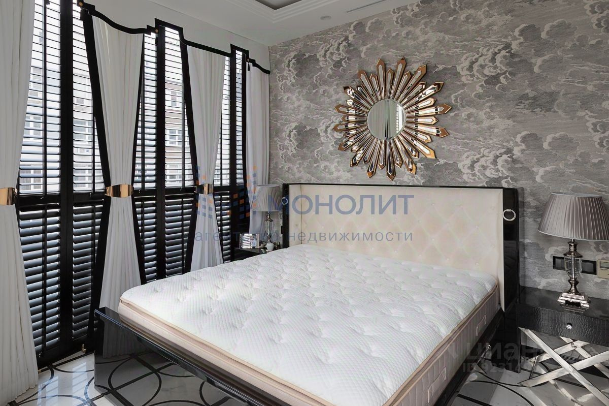 Квартира продается с мебелью и техникой под ключ. Интерьер оформлен в спокойных тонах. В общих зонах преобладает черно-белое сочетание, в спальнях — пастельные тона. Что касается самого жилого комплекса, то он находится на Почтовом съезде. Сдали элитный дом в 2013 году.