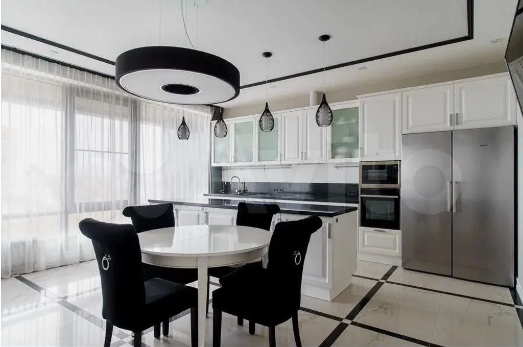 Несколько дешевле можно найти вариант на улице Максима Горького. Там за 55,8 млн рублей предлагают просторную четырехкомнатную квартиру. И мы не преувеличиваем, в распоряжении жильцов будут целых 150 «квадратов». В квартире большая кухня-гостиная, две детских, спальня, два санузла, гардеробная. Кроме того, в комнатах выполнен дизайнерский ремонт, в котором в основном преобладают белый и бежевые цвета. Интерьер выполнен в простом, минималистичном стиле без кричащих акцентов. В стоимость также включена встроенная мебель: кондиционер, холодильник, стиральная машина, посудомоечная машина, водонагреватель. По всей квартире установлено видеонаблюдение, так что любоваться новым жильем можно будет в режиме онлайн.