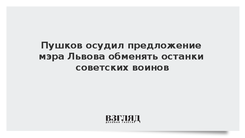 Председатель комиссии Совета Федерации по информполитике Алексей Пушков прокомментировал инициативу мэра Львова Андрея Садового по обмену эксгумированных останков советских воинов на украинских военнослужащих, сообщает ТАСС.