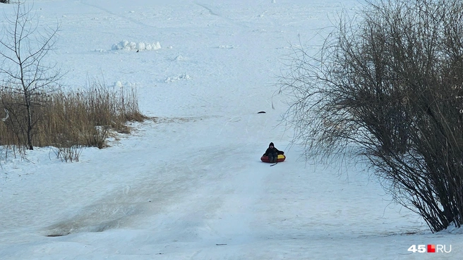 По этому склону на набережной ребятам нравится кататься на санках и на тюбингах