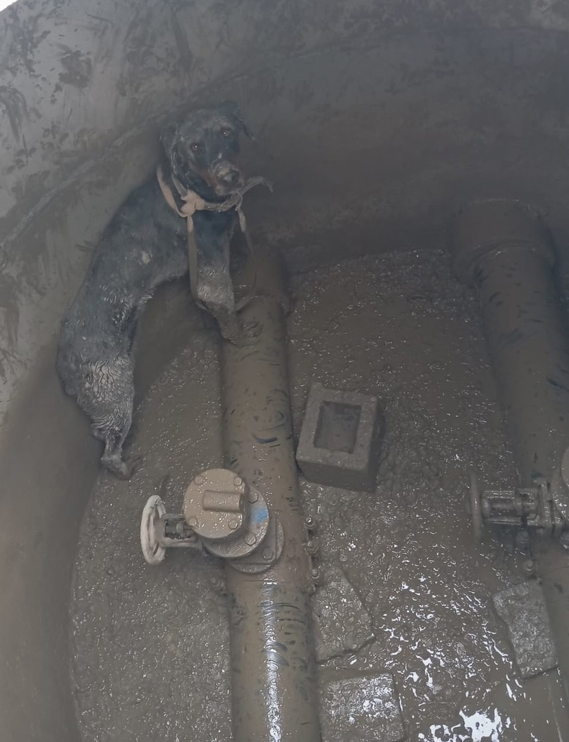 Очевидцы вызвали на место происшествия спасателей. С помощью специальных приспособлений четвероногого вызволили из западни.