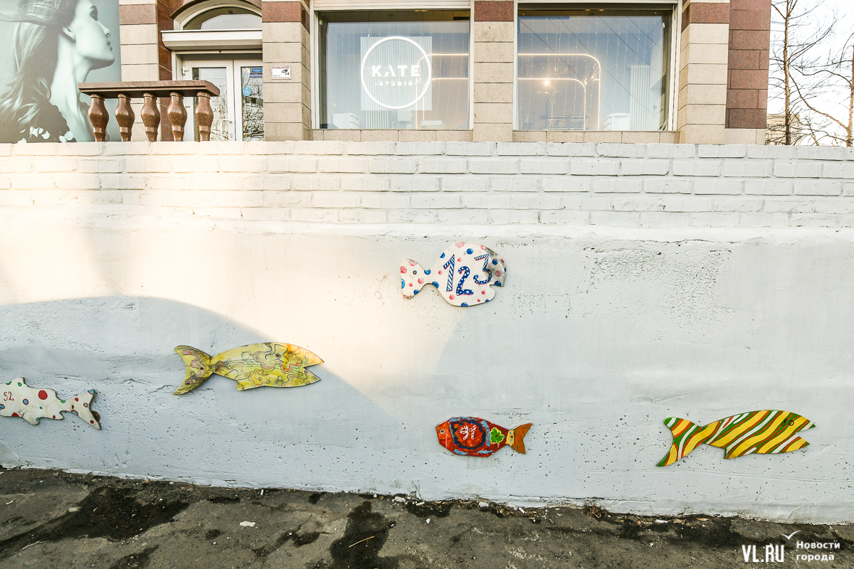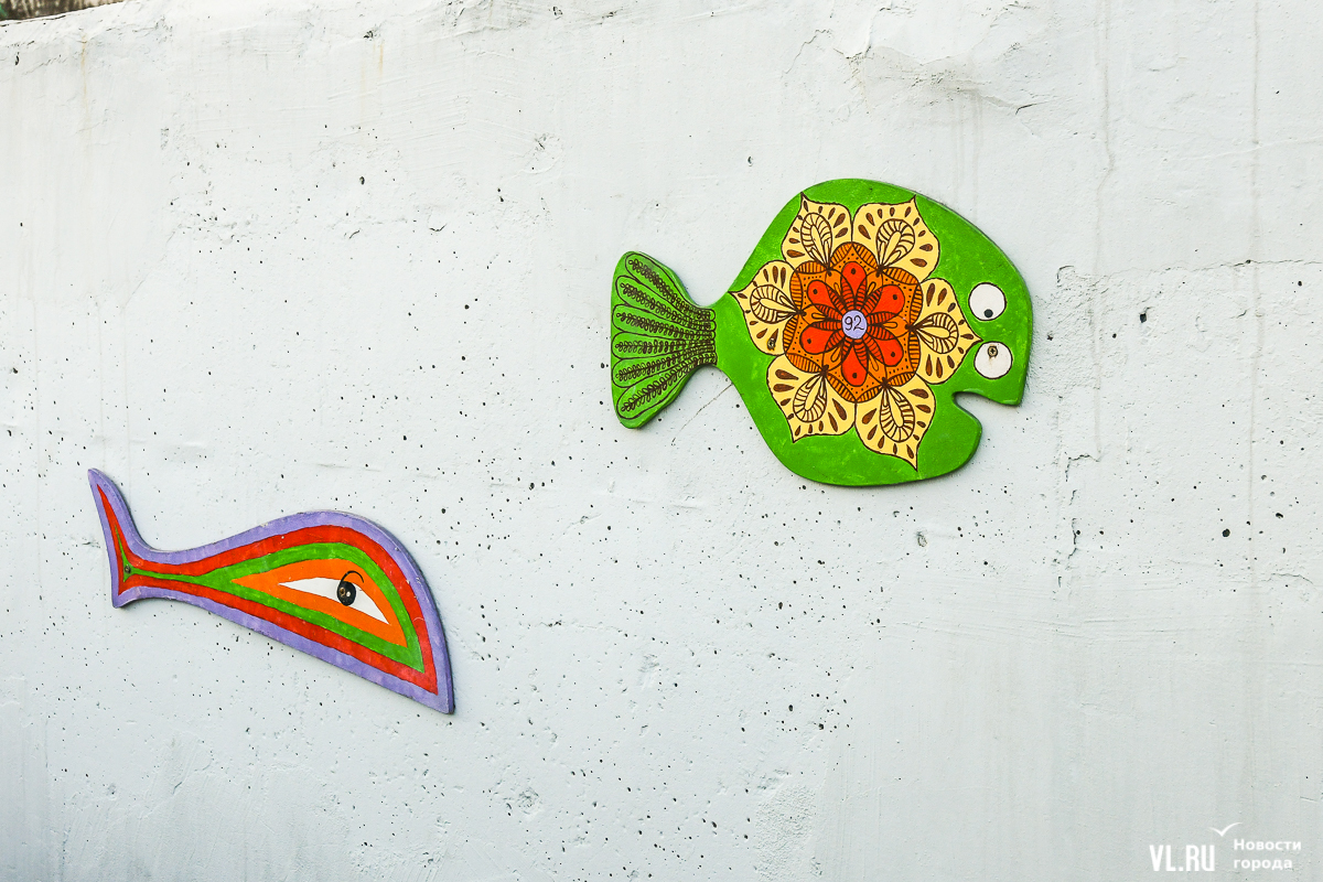 Жители Владивостока не так давно заметили сходство пропавших из сквера на Некрасовской рыбок и тех, что летом появились на подпорной стене у Красного Знамени, 44. Как оказалось, чтобы творчество не пропадало, большинство фигурок из фанеры перевезли на Тополиную аллею.