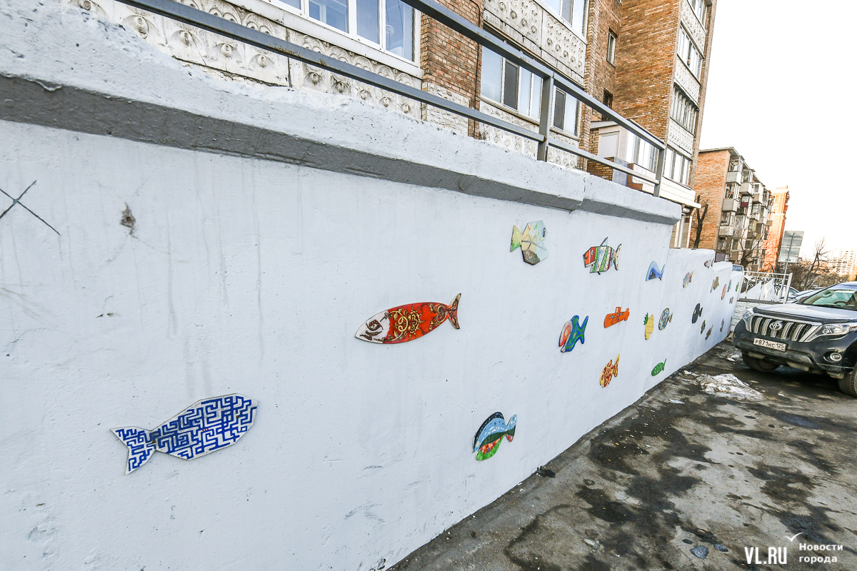 Павел Шугуров, начальник отдела архитектуры и дизайна администрации Владивостока, отметил, что во время ремонта Некрасовского сквера рыбок аккуратно сняли, сложили и стали искать им новое место. Рыбки из фанеры оказались достаточно долговечным украшением, почти за восемь лет с ними не произошло никаких существенных изменений. На некоторых немного облезла краска, но большинство из них выглядят почти как новые. К тому же оказалось, что такое украшение стены хорошо работает в качестве антивандального – до 2022 года стена на Тополиной аллее часто была в рекламных листовках или хаотичных граффити, а с момента переезда рыбок на ней не появилось ни одной надписи или объявления.