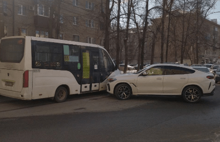 На этой же улице случилось и ещё одно ДТП, с автобусом. Иномарка врезалась в маршрутку № 55.