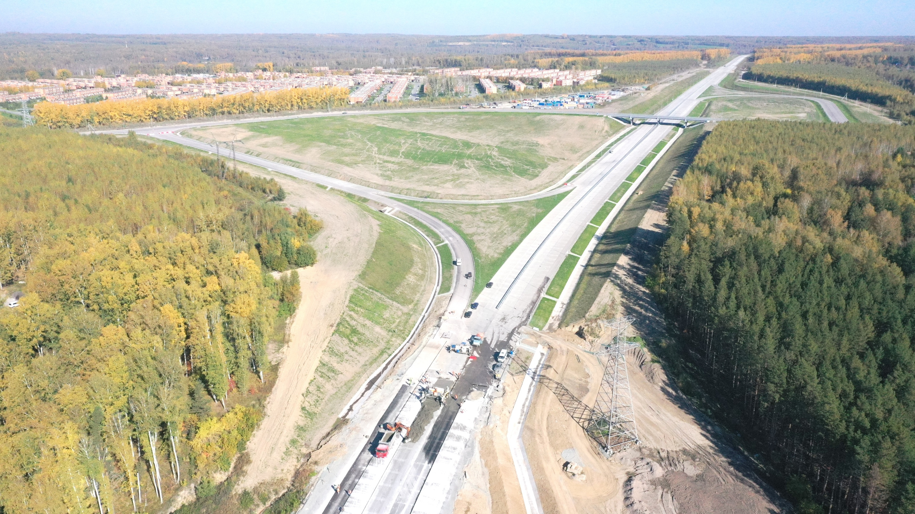 Ко 2 ноября на трассе закончили отсыпку земляного полотна, устройство слоев дорожной одежды из песка, покрытия из цементобетона, обочин и разделительной полосы. Строители установили 17,5 километров барьерного ограждения.