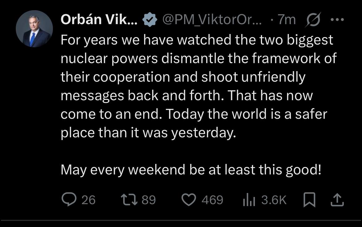 «Сегодня мир стал безопаснее, чем был вчера» — венгерский премьер Виктор Орбан высоко оценил саммит на Аляске