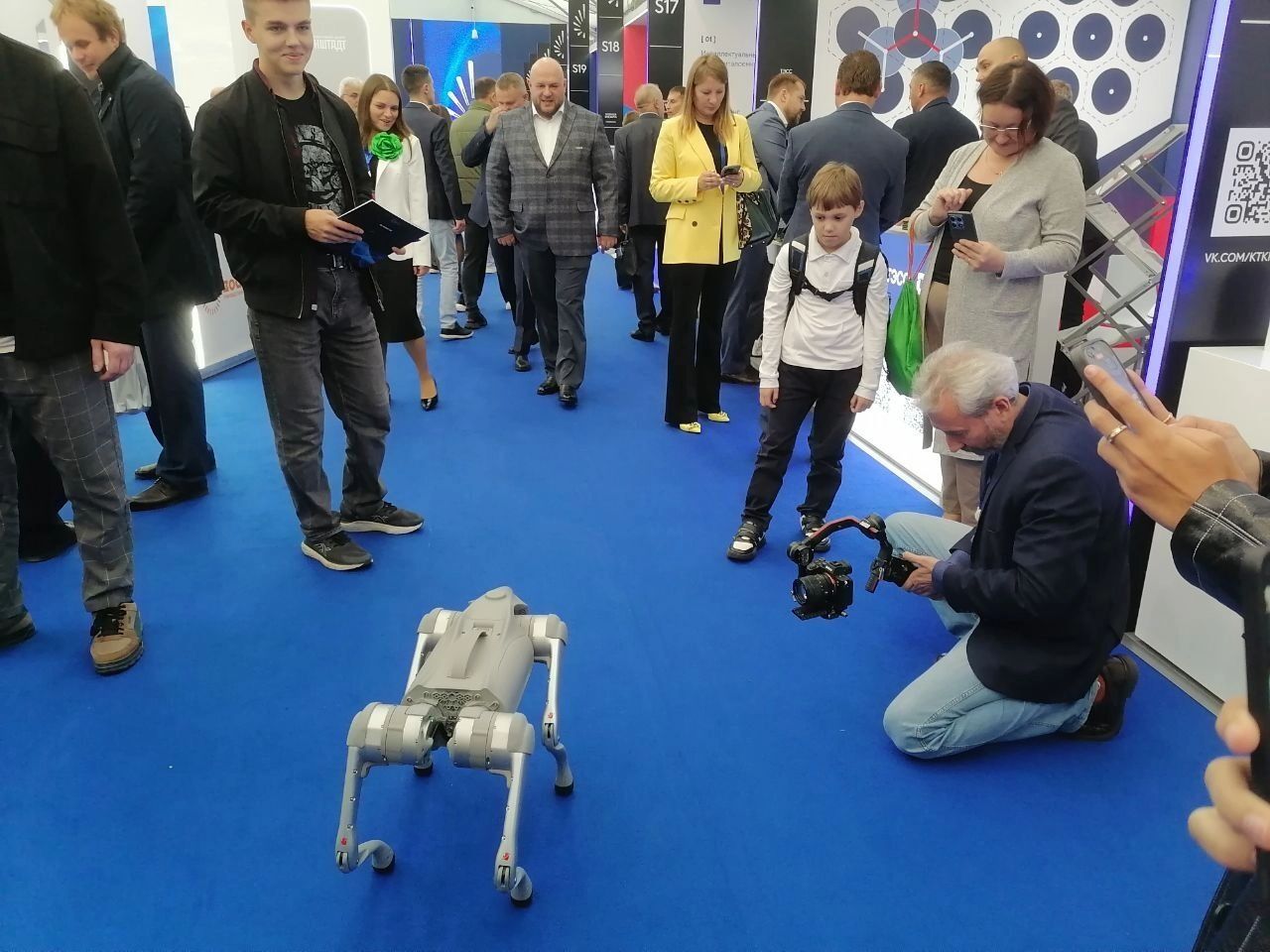 Неформальная молодежь в ярких прикидах и специалисты нефтегазовой отрасли, одетые по студенчески скромно, смешались с «випами» в представительских костюмах. Тут же слышен странный топот, а за ним — восторженные восклицания. Причина умиления всей этой разноликой толпы — робот-собака.