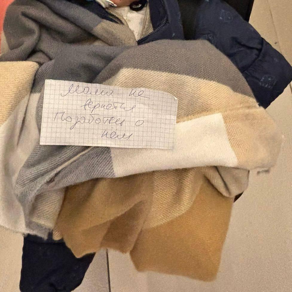 Фото записки, оставленной вместе с младенцем в петербургском ТРК «Порт Находка», публикует 18 декабря пресс-служба прокуратуры. «Мама не вернется. Позаботьтесь о нем», — написано на листке в клетку неровным почерком.
