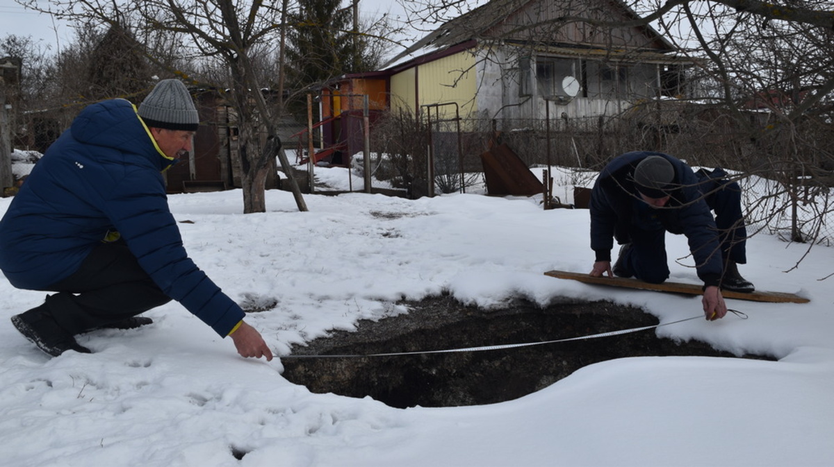 – Не знаю, когда бы я заметила эту яму, если бы не мои утки. Я увидела, как они столпились и стали разглядывать в снегу, покрытом льдом, какую-то щель, но сначала не обратила на это внимания. Когда началась оттепель, снег обвалился вместе с землей, и я увидела глубокую цилиндрическую яму, на дне была вода. Постепенно края обсыпались, появилась своеобразная воронка. Сейчас она уже захватила и тропинку – боюсь подходить ближе. В интернете я нашла информацию, что провалы в земле могут быть из-за того, что раньше там были какие-то строения, подвалы. Я в этом доме живу 15 лет. Мама позвонила бывшим хозяевам, они сказали, что на их памяти никаких строений там не было, – рассказала Марина Постыка.