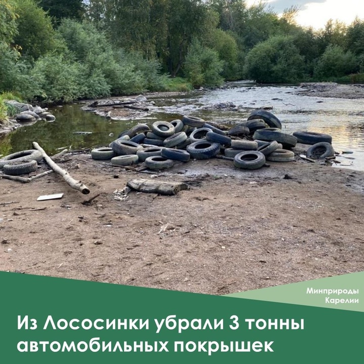 Как сообщили в Минприроды Карелии, сотрудники ведомства вместе со специализированной организацией очистили Лососинку от мусора в районе Коммунальной улицы. Именно там скопилось большое количество автомобильных покрышек.