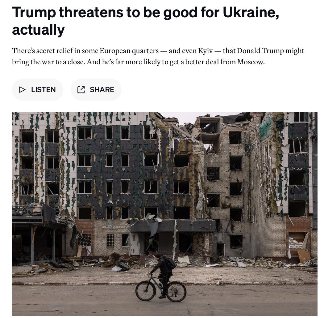 Ещё одна статья в западной прессе о том, что Трамп для Украины может быть лучше, чем Байден, так как сможет в ближайшее время закончить войну по линии фронта.