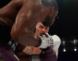 Этот бой состоялся 26 августа во Вроцлаве (Польша). Усик (21-0, 14 КО) победил техническим нокаутом в 9-м раунде, но Дюбуа (19-2, 18 КО) с вердиктом не согласен. Всё дело в том, что в 5-й трёхминутке он уронил чемпиона ударом ниже пояса. Рефери зафиксировал фол, дал возможность украинцу восстановиться. Дюбуа и его команда уверждают, что удар был легальным.