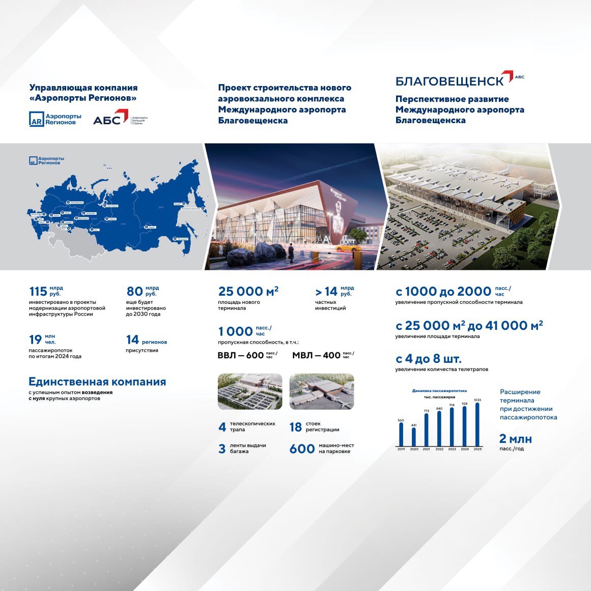 🏗Работы по строительству нового аэровокзального комплекса стартовали в 2023 году. Уже завершился монтаж металлоконструкций здания, монтаж 3 тыс. кв. м стеновых сэндвич-панелей, ведется монтаж фасадных и витражных конструкций.