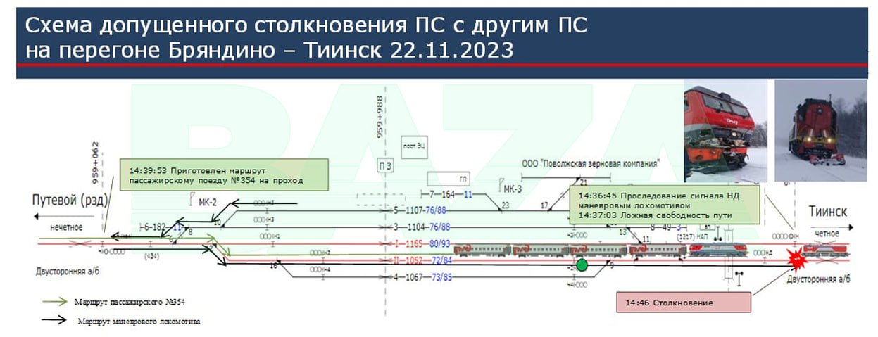Причиной столкновения стали одновременно сбой системы и человеческий фактор. Сработал ложный сигнал о свободных путях. Автоматика по какой-то причине дала сбой, однако сотрудница РЖД также должна была отслеживать пути, чтобы не допустить столкновения поездов. Стрежнева уже призналась на допросе, что действительно выпила перед сменой.