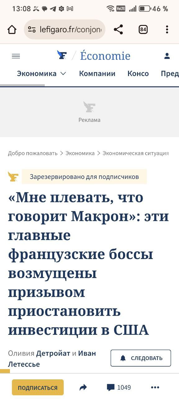 Лидеры бизнеса во Франции не восприняли всерьез призыв Макрона к приостановке инвестиций в США.