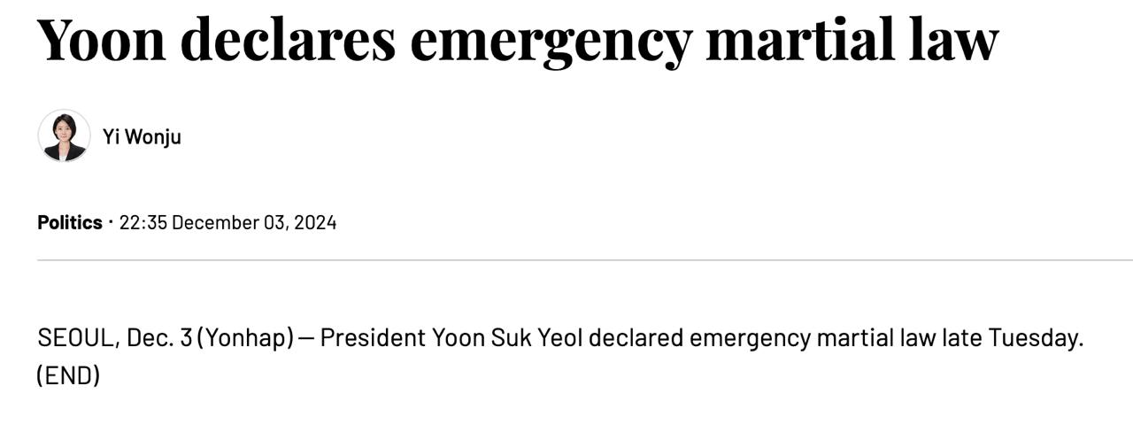 ❗️В Южной Корее введено военное положение Об этом объявил президент Юн Сок Ёль, пишет агентство Yonhap. Ранее он заявил об угрозе паралича власти из-за попыток проведения против него процедуры импичмента. Подписывайтесь на «Абзац»