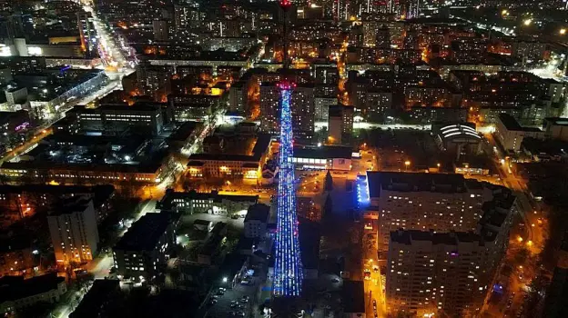 – Игорь Анатольевич рассказал, что архитектурно-художественная подсветка объекта была обновлена в прошлом году: добавились гирлянды, установлены дополнительные прожекторы и медиафасад. Он располагается на отметке более 60 м от земли и виден из разных точек города, а также может показывать контент на площади более 300 кв. м, в том числе транслировать текстовые сообщения, – уточнил Сергей Петрин.