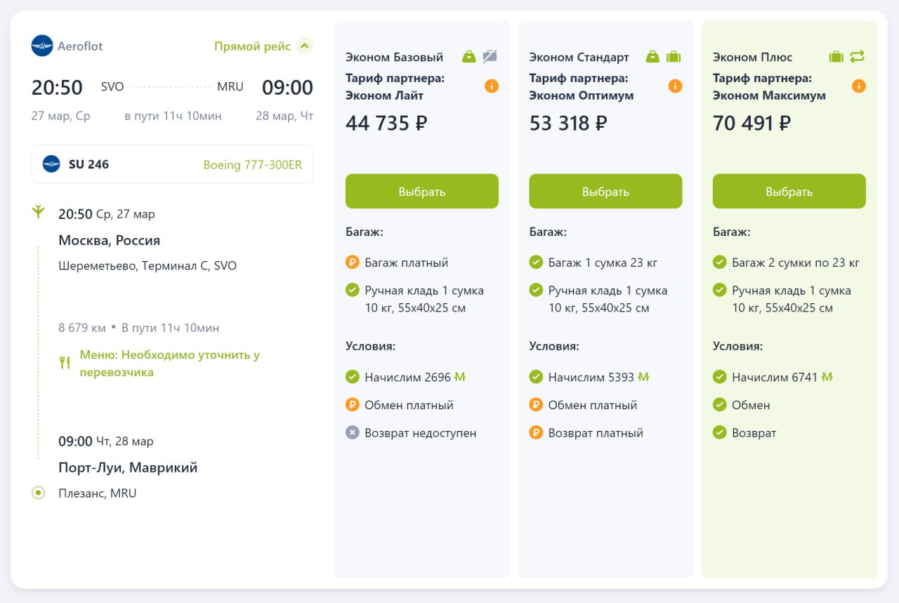 Есть рейсы из Москвы на Маврикий, на Кубу, в Дели и по другим направлениям. За них также будут начислять мили S7 Priority.