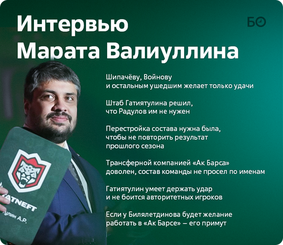 — Мы будем смотреть. Есть Кубок, а есть ещё развитие молодежи и то, в какой хоккей играет наша команда. Одного от другого нельзя отделять. Мы, в свою очередь, будем всячески помогать Гатиятулину. Мы идём к своей цели вместе, а не по отдельности. Он и сам прекрасно понимает, в какой клуб пришел. Никто перед ним не ставит минимальные задачи, только максимальные. Ему такие вещи не нужно дополнительно объяснять, он всё это понимает.