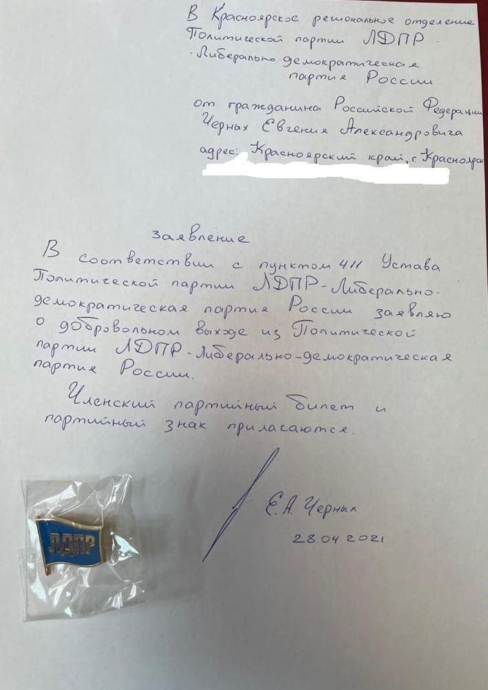 Евгений Черных избрался в ЗС края в 2016 году от ЛДПР. В конце апреля 2021 года он заявил о выходе из партии. Свое решение он называл «взвешенным и обдуманным», а причиной выхода из партии он называл нехватку «немалого административного ресурса», из-за чего «многие вопросы остались незавершенными». Летом 2021 года Черных попытался выдвинуться в новый созыв ЗС от «Единой России», но в итоге избраться в новый состав краевого парламента ему не удалось. Сейчас Черных сфокусировался на кинобизнесе и продюсировании кинолент.