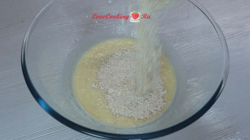 Сухую смесь отправляем к жидким ингредиентам. Перемешиваем.
