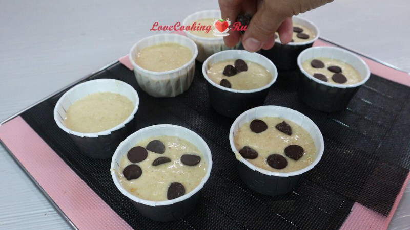 Выпекаем при 180°С около 25-30 минут. Смотрите, как кексы подрумянятся.