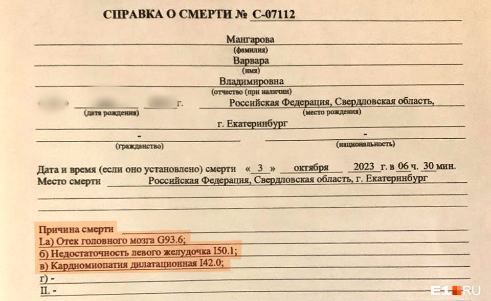 В справке о смерти девочки патологоанатом указал, что она умерла от отека головного мозга, недостаточности левого желудочка сердца и дилатационной кардиомиопатии. Накануне Владимир написал заявление в Министерство здравоохранения Свердловской области, но ответа пока не получил.